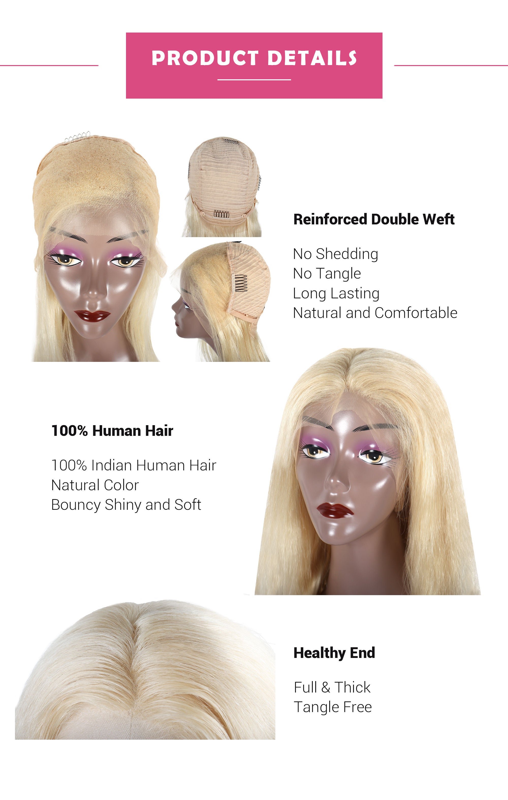 Indian Human Hair Blonde 613 13*4 Lace Front Wig Straight