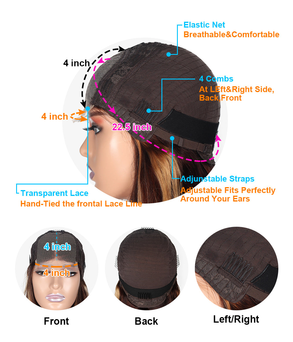 IM Beauty Highlighted 100% Human Hair 4*4 Closure Bob Wig